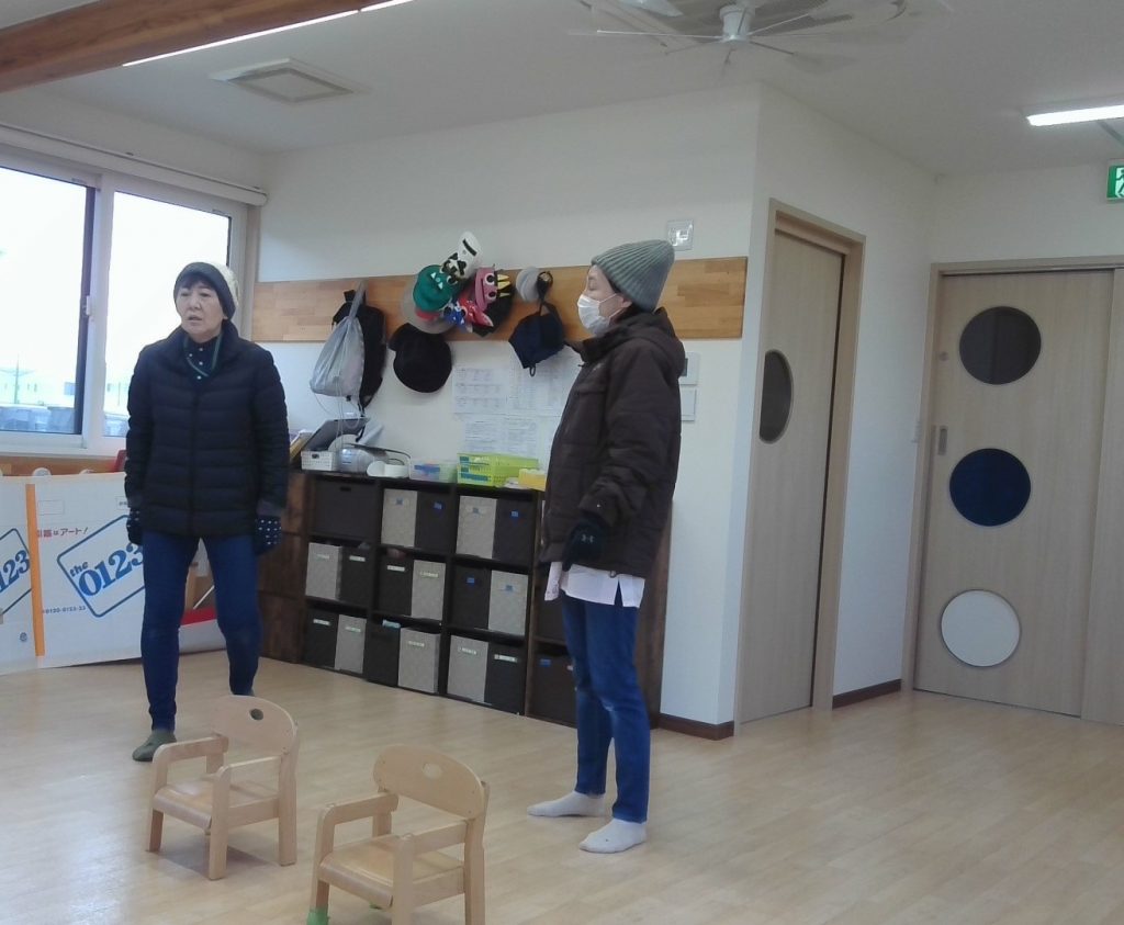 スノーウエア・帽子・手袋をしっかり身に付けたケイコちゃんとトモミちゃん。外で雪だるまを作ろうと張り切っていたのですが・・・💦