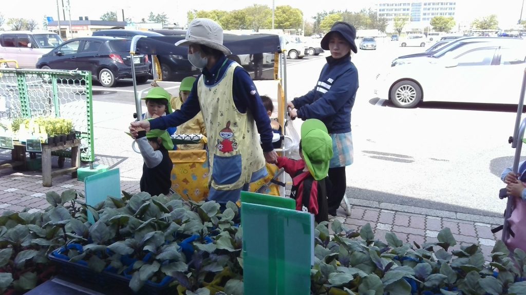 今日は、保育園で育てる野菜の苗を買いにプラントまで行って来ましたよ~! トマト、きゅうり・・・何の野菜の苗が売ってるかな~?みんな、はりきって出発進行~!(*^^*)