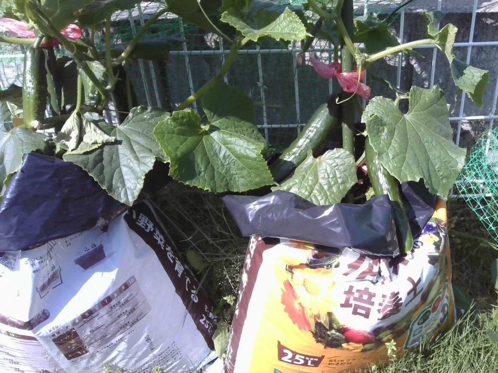 4月に植えたきゅうりの苗…すくすく成長し大きく実りましたよ~(⌒∇⌒)