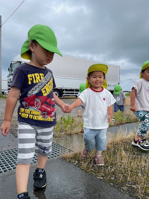 今朝は、ザーザーとたくさんの雨が降っていましたが、おやつのあとに雨が上がったのでみんなで雨上がりの探検に出かけました☆