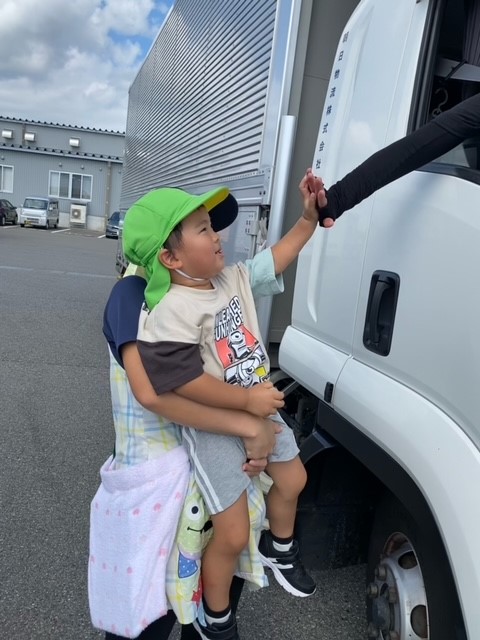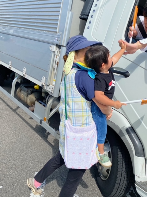 21日から全国秋の交通安全運動が始まり、保育園のみんなも参加しました🍁 いつも子どもたちが窓から目を輝かせて見ているトラック!今日はトラックのの運転手さんに旗をプレゼントして、お見送りをしてきました(*^^*)