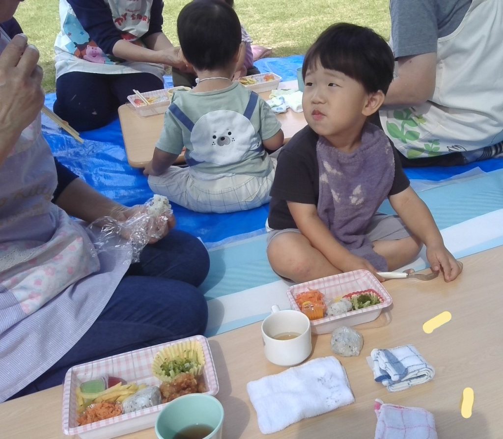 お昼寝明けも2歳児クラスから「お弁当おいしかったね~」「またあしたも食べよっか!」という声が聞こえ、おいしかった・楽しかった気持ちがずっと残っているんだぁ~と、嬉しい気持ちになりました(*´▽`*) またピクニックしたいね♪