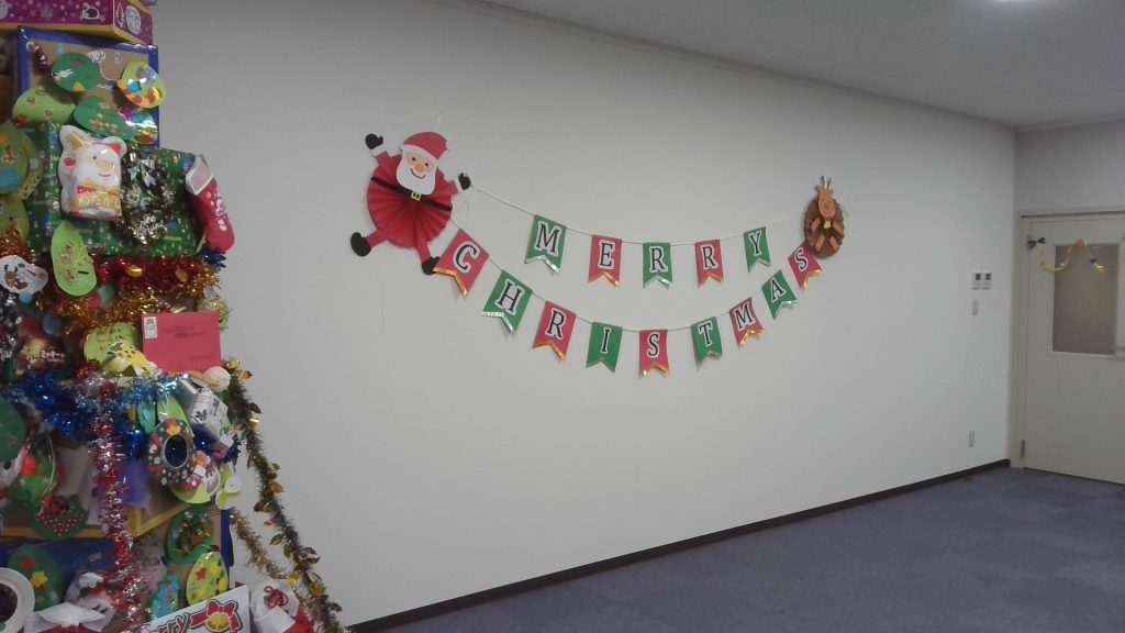 保育園にもかわいいクリスマスツリーが飾られていますが、隣りにある睦の倉庫にも大きな大きなクリスマスツリーを飾りましたよ~(o^―^o)ニコ